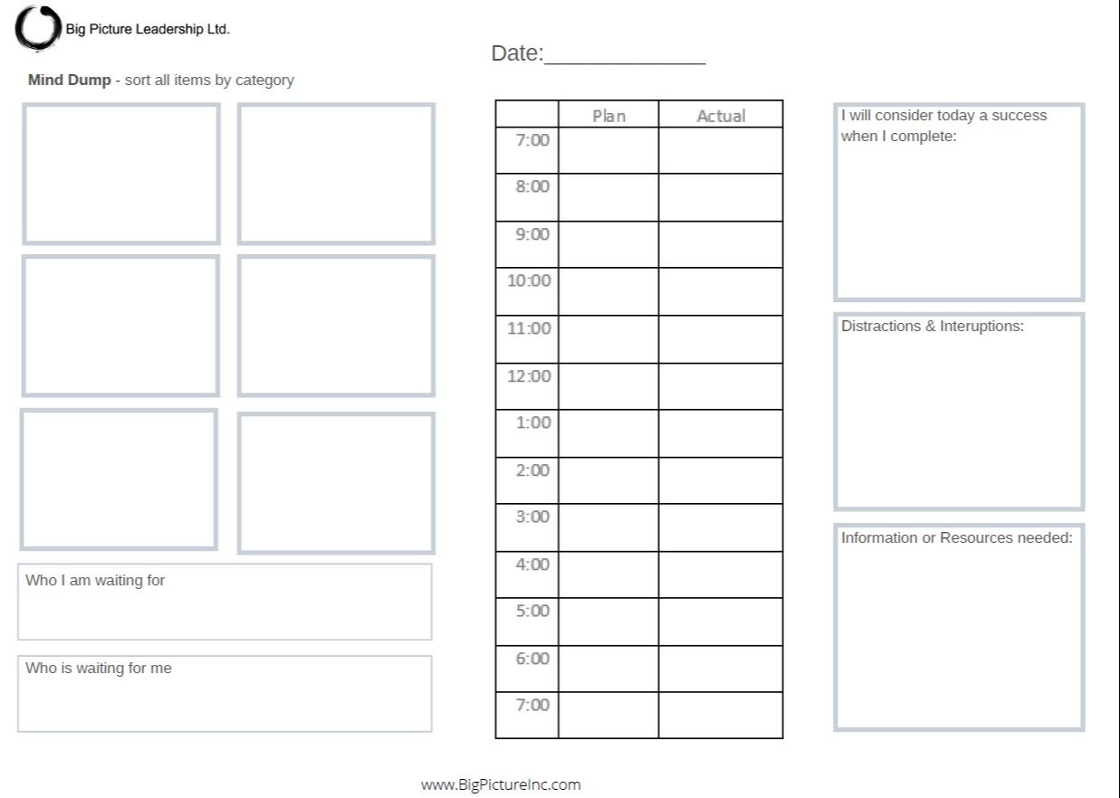 Define Success — one sentence: “Today is a win if…”